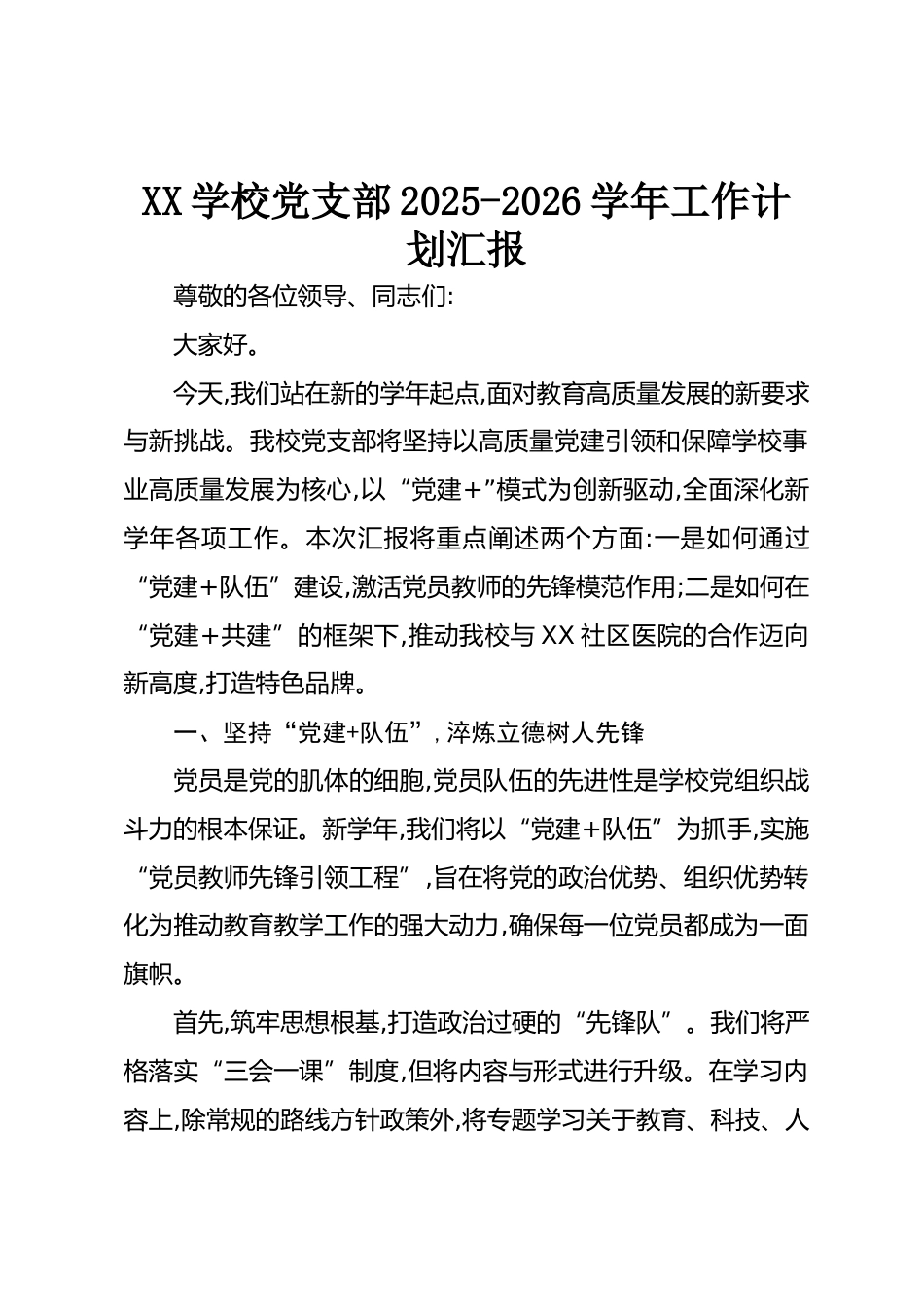 XX學(xué)校黨支部2025-2026學(xué)年工作計(jì)劃匯報(bào)