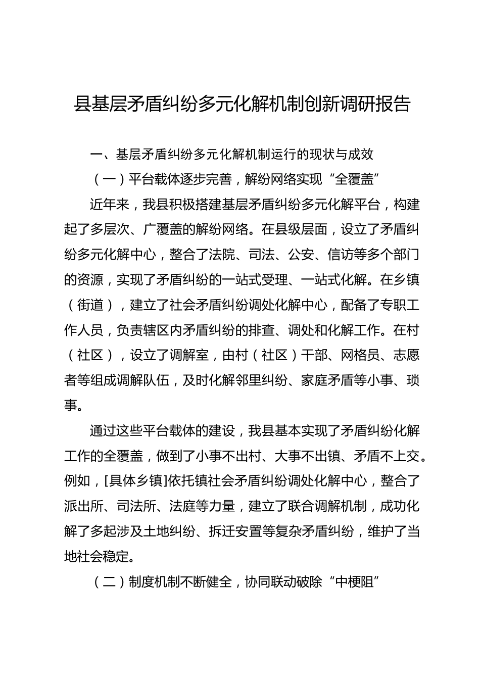 縣基層矛盾糾紛多元化解機(jī)制創(chuàng)新調(diào)研報告