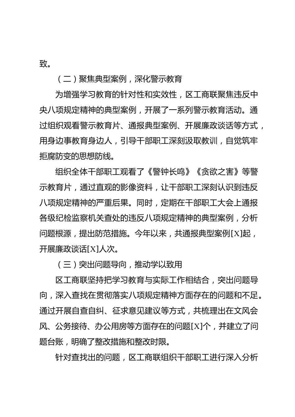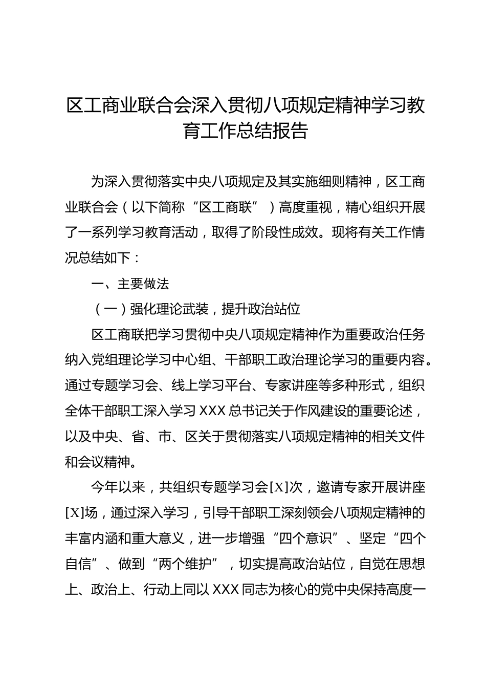 區(qū)工商業(yè)聯(lián)合會(huì)深入貫徹八項(xiàng)規(guī)定精神學(xué)習(xí)教育工作總結(jié)報(bào)告