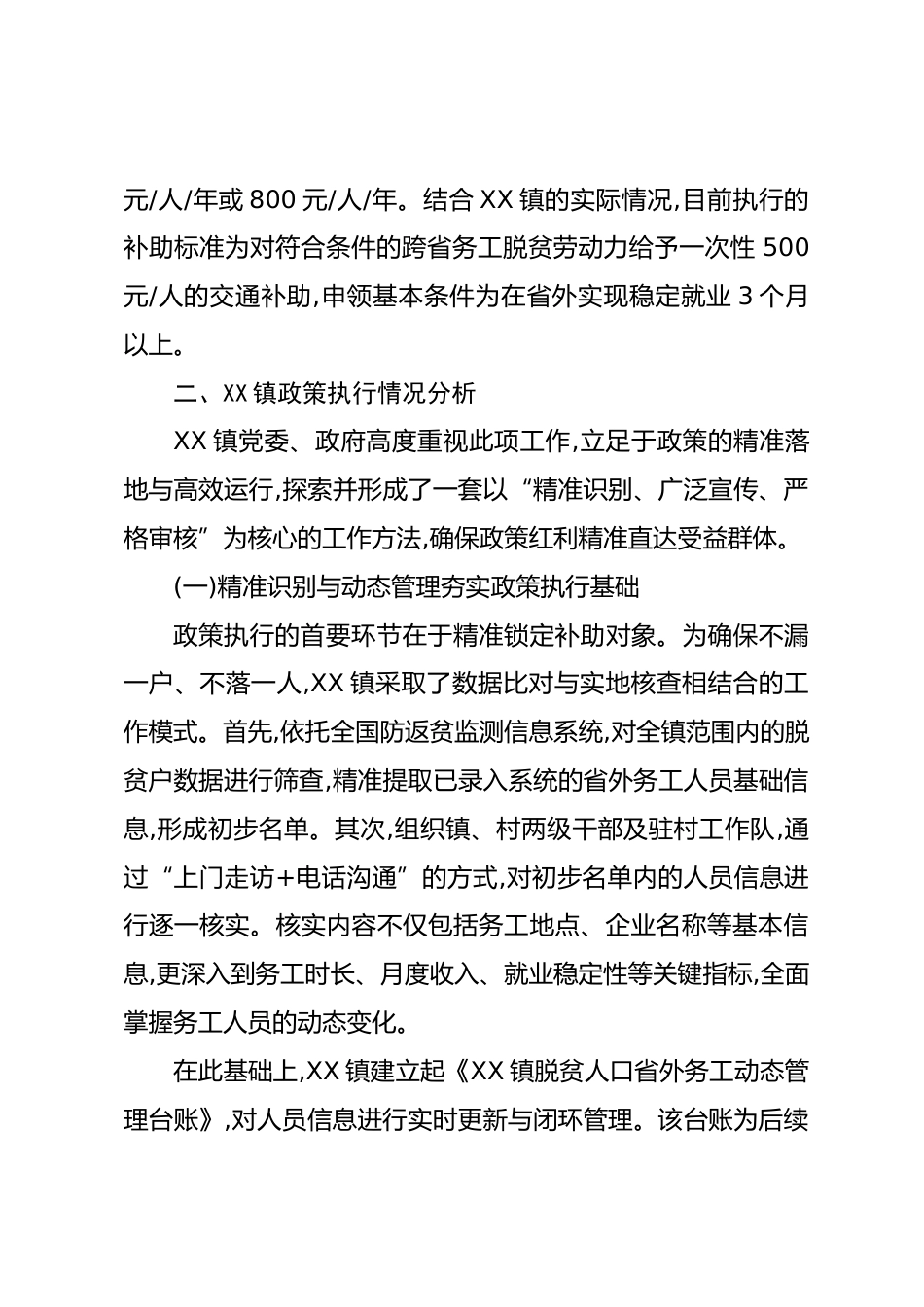 XX單位關(guān)于XX鎮(zhèn)跨省務(wù)工交通補(bǔ)助政策落實(shí)情況的調(diào)研報(bào)告