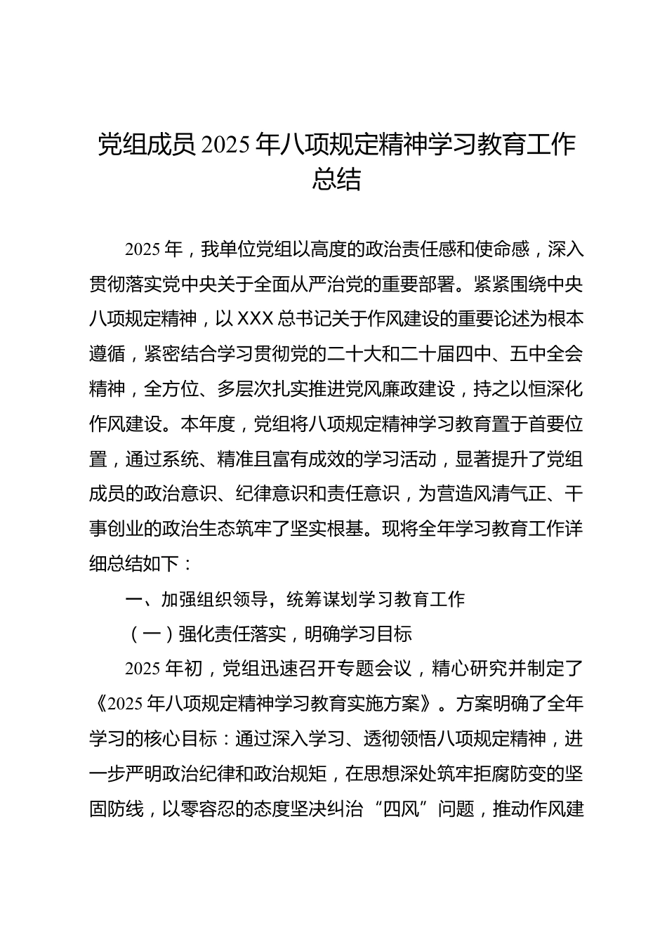 黨組成員2025年八項規(guī)定精神學習教育工作總結