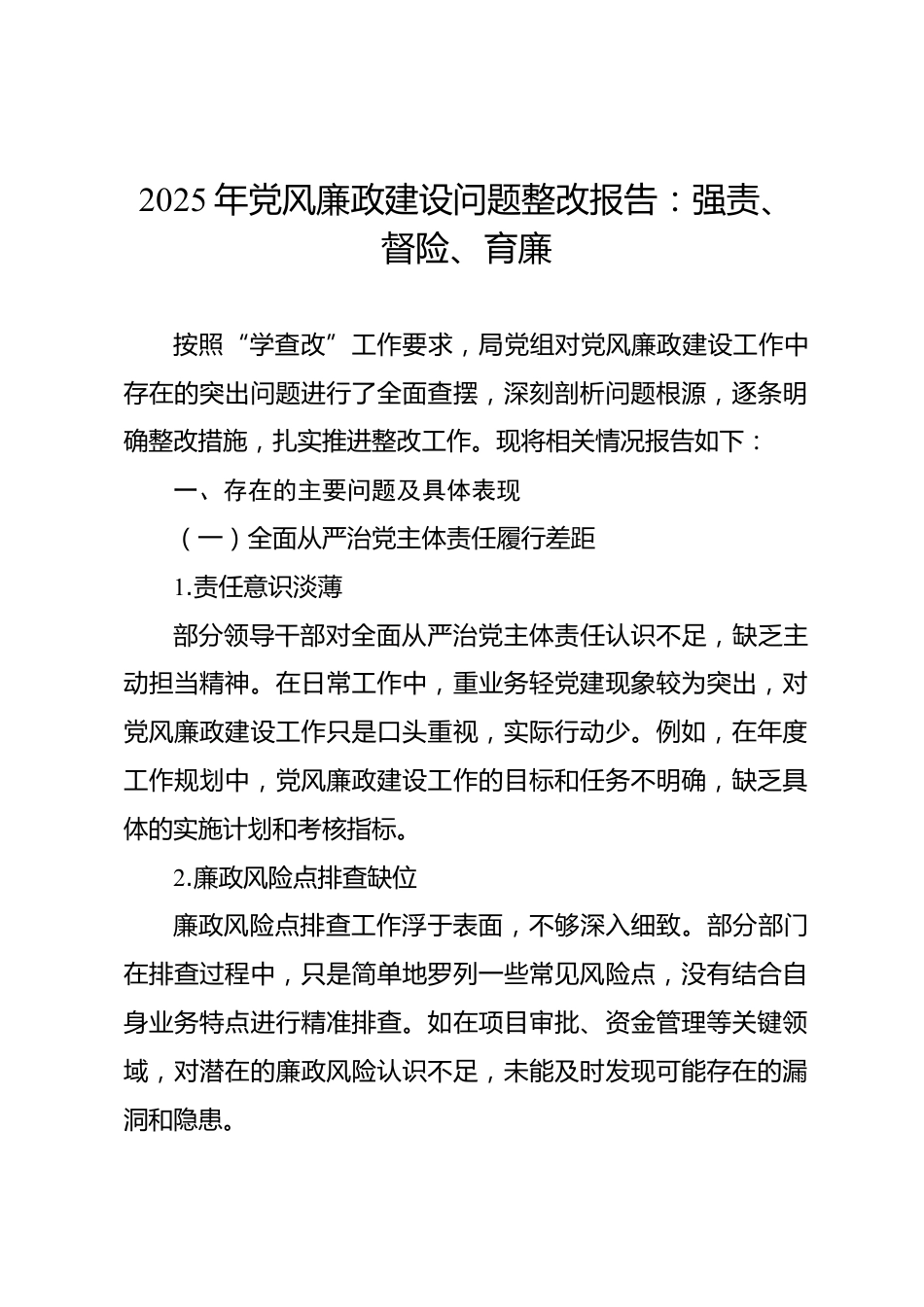 2025 年黨風(fēng)廉政建設(shè)問題整改報告:強(qiáng)責(zé)、督險、育廉