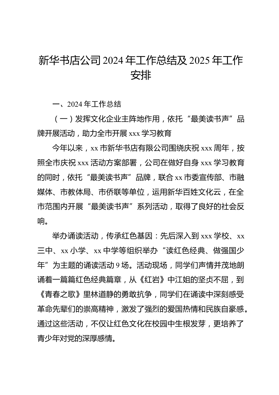 新華書店公司2024年工作總結(jié)及2025年工作安排