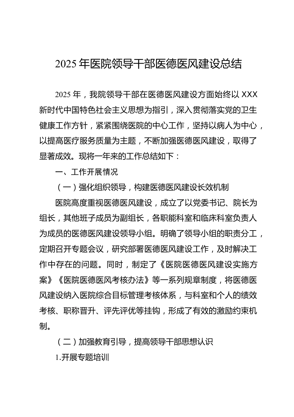 2025 年醫(yī)院領(lǐng)導(dǎo)干部醫(yī)德醫(yī)風(fēng)建設(shè)總結(jié)