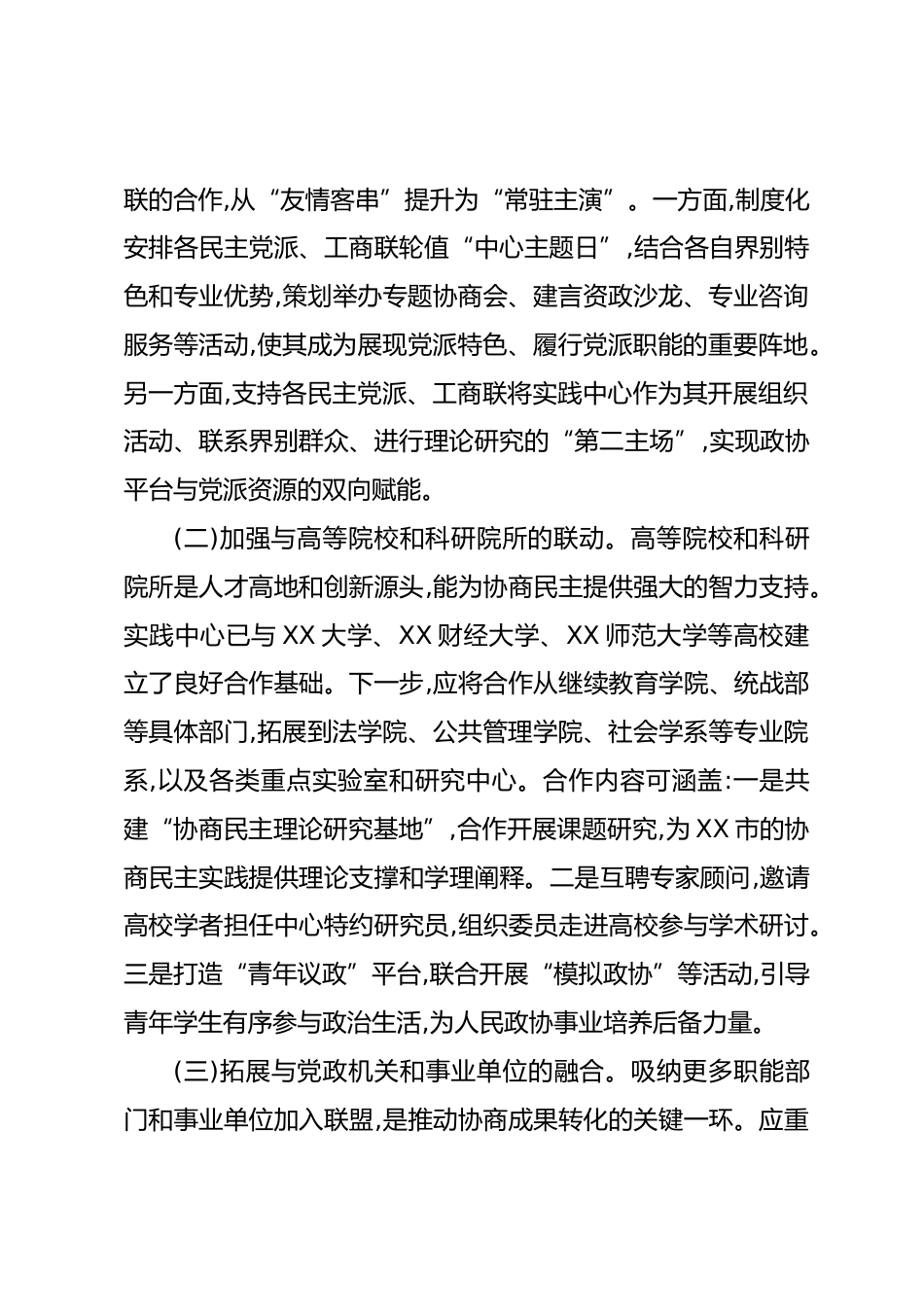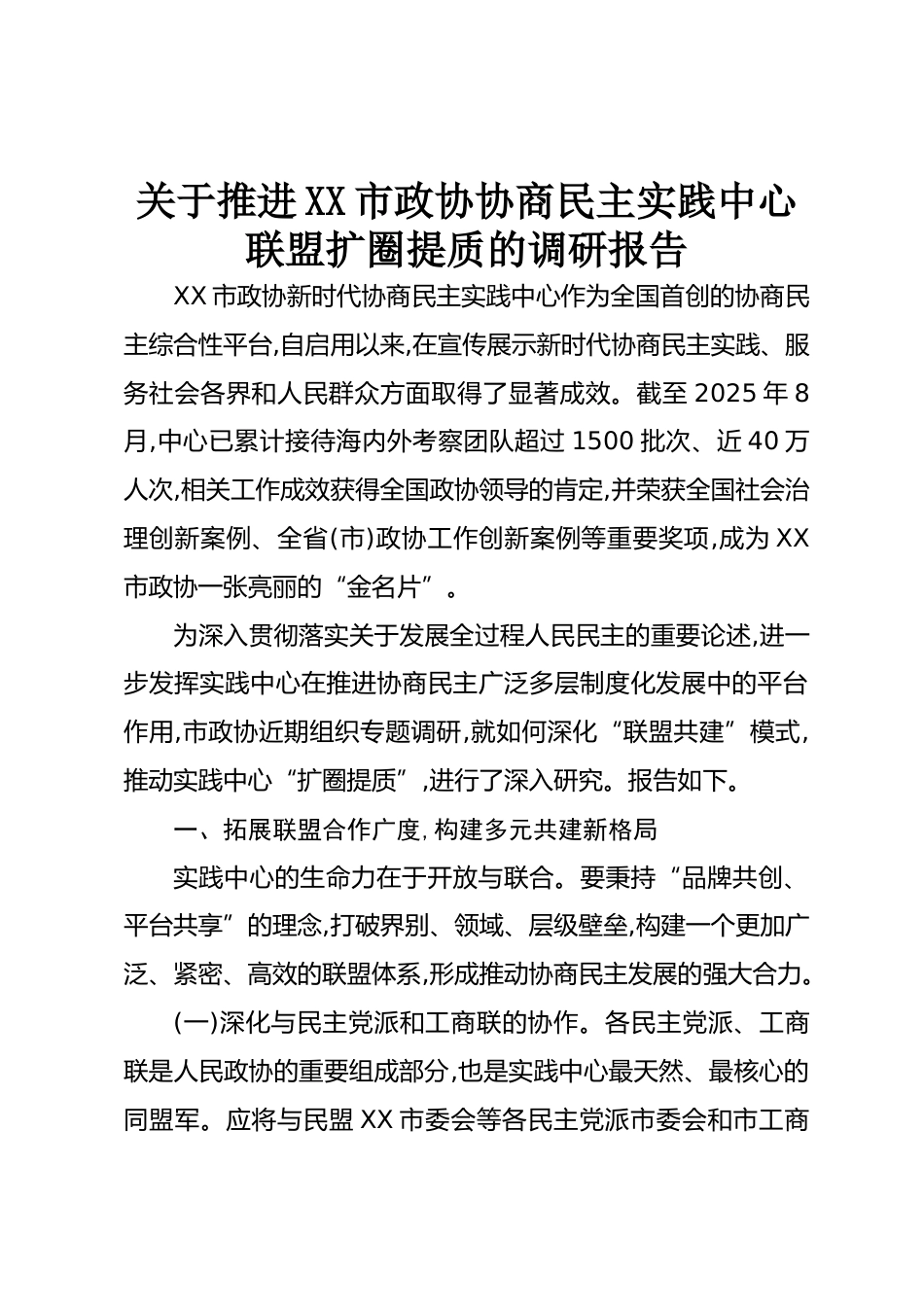 關(guān)于推進(jìn)XX市政協(xié)協(xié)商民主實(shí)踐中心聯(lián)盟擴(kuò)圈提質(zhì)的調(diào)研報告