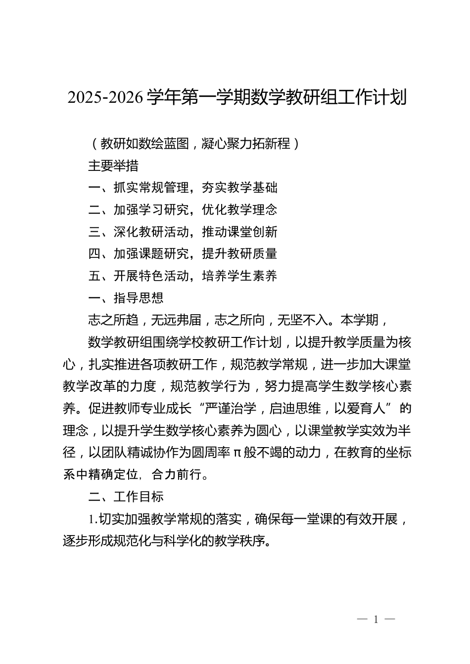 2025-2026秋季學(xué)年第一學(xué)期【數(shù)學(xué)】教研組工作計(jì)劃:教研如數(shù)繪藍(lán)圖,凝心聚力拓新程