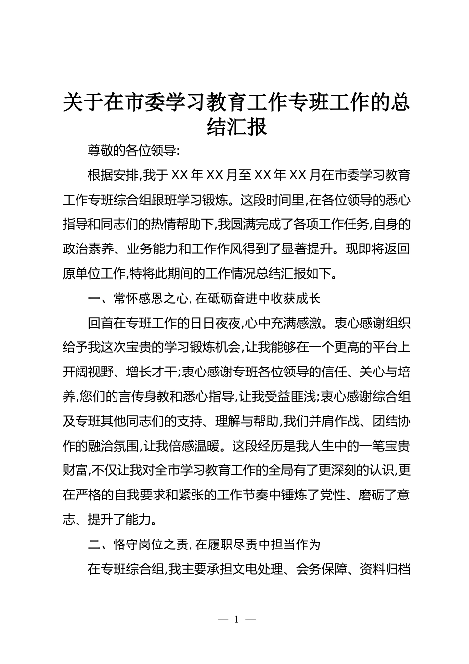 關(guān)于在市委學(xué)習(xí)教育工作專班工作的總結(jié)匯報