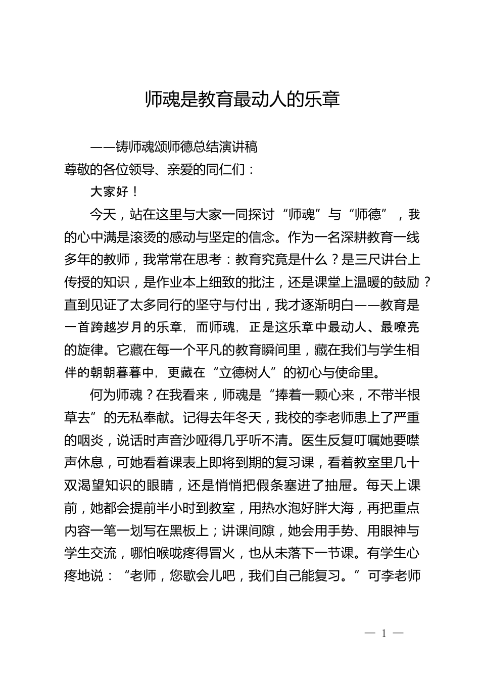 師魂是教育最動人的樂章——鑄師魂頌師德總結演講稿