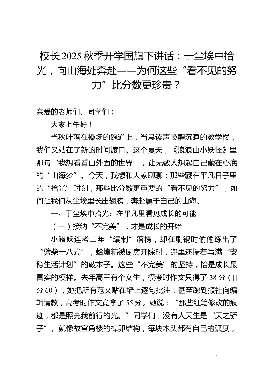 校長2025秋季開學(xué)國旗下講話:于塵埃中拾光,向山海處奔赴——為何這些“看不見的努力”比分?jǐn)?shù)更珍貴?