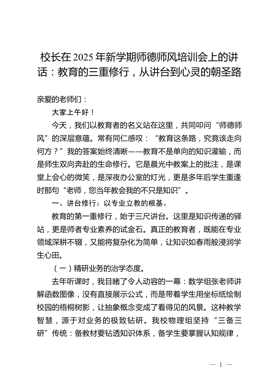 校長在2025年新學(xué)期師德師風(fēng)培訓(xùn)會(huì)上的講話:教育的三重修行,從講臺(tái)到心靈的朝圣路