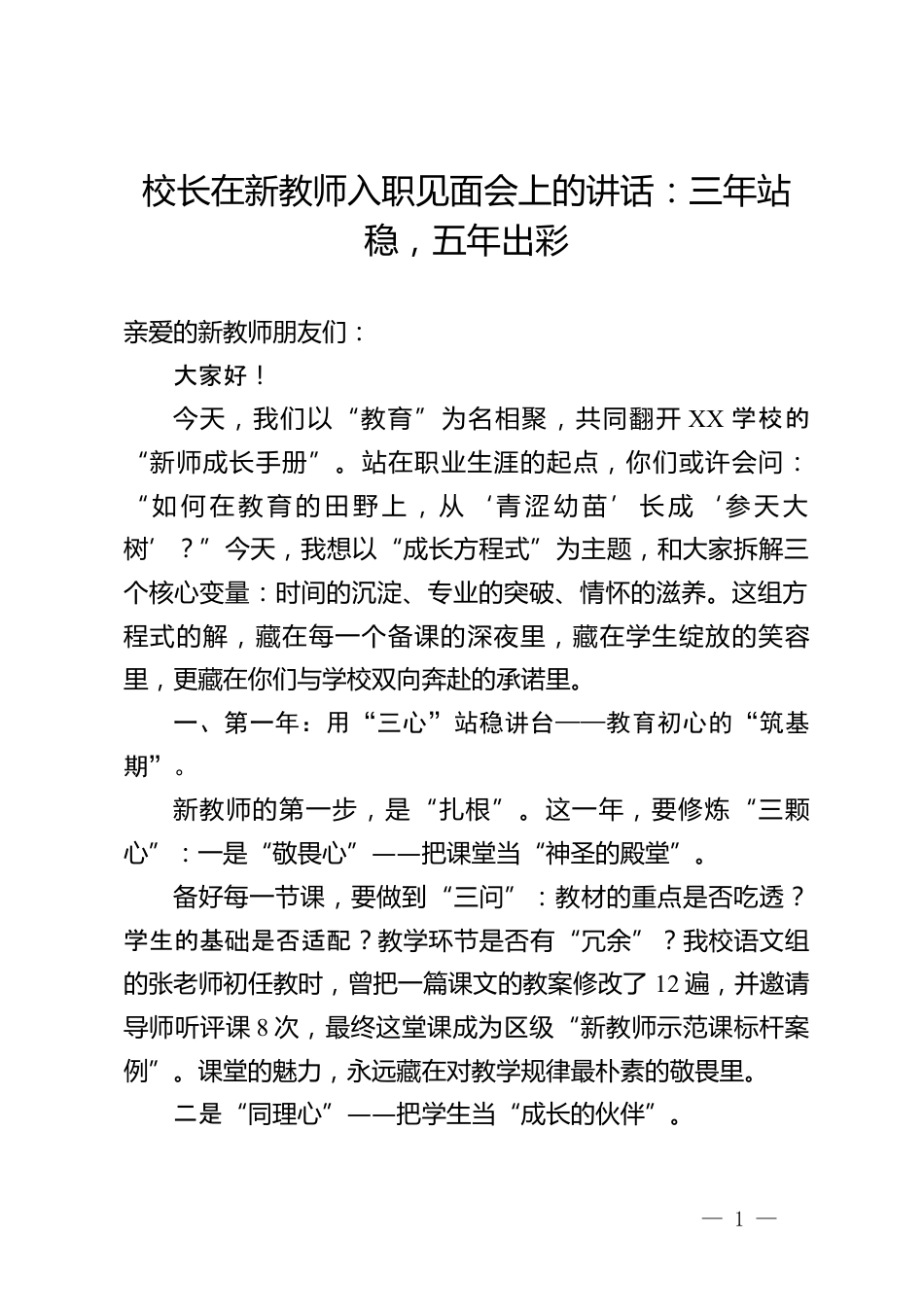 校長在新教師入職見面會上的講話:三年站穩(wěn),五年出彩