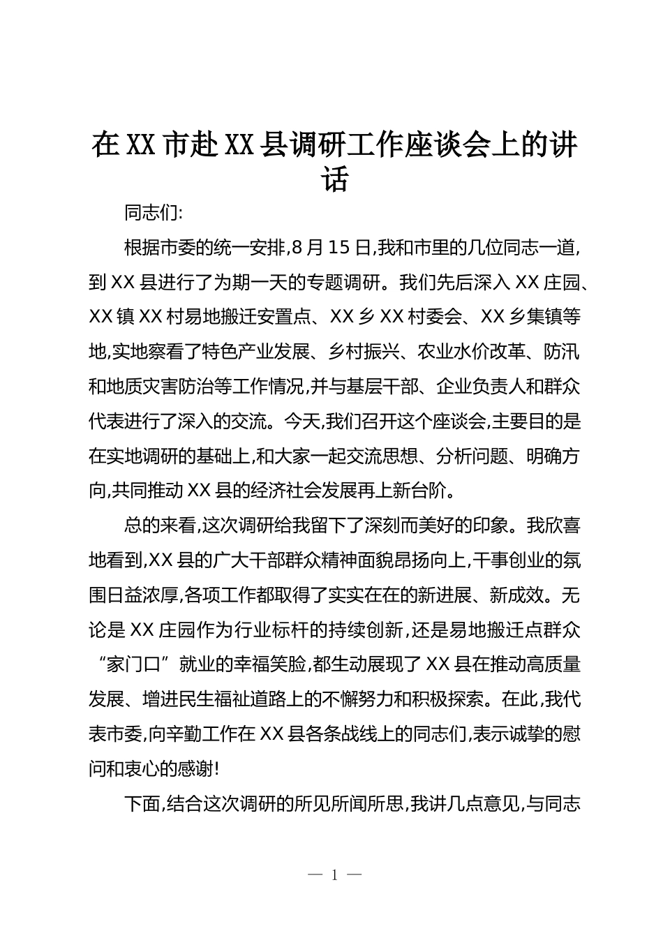 在XX市赴XX縣調(diào)研工作座談會上的講話VIP免費