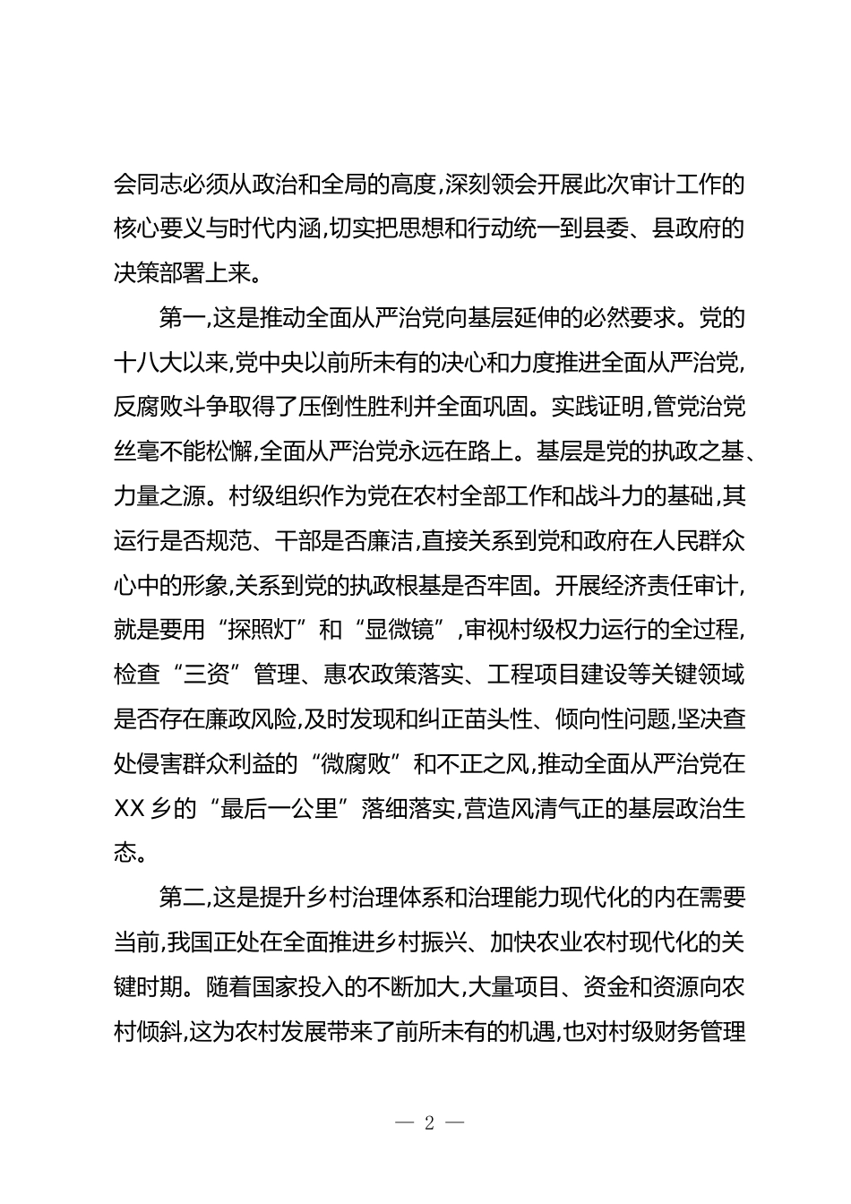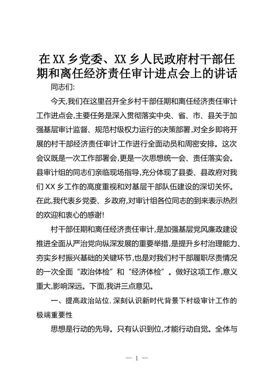 在XX鄉(xiāng)黨委、XX鄉(xiāng)人民政府村干部任期和離任經(jīng)濟責任審計進點會上的講話