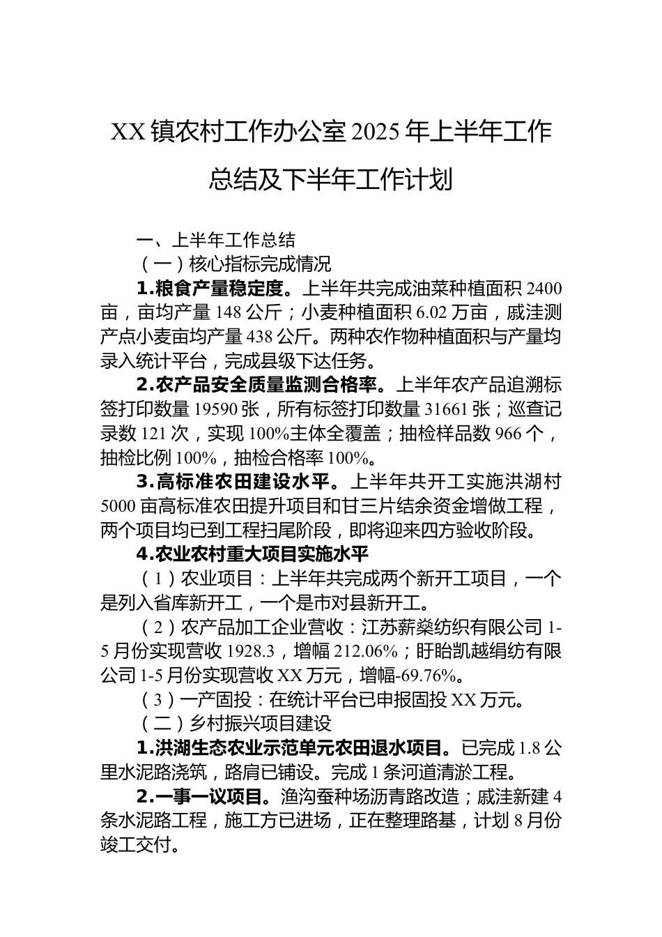 XX鎮(zhèn)農(nóng)村工作辦公室2025年上半年工作總結(jié)及下半年工作計(jì)劃