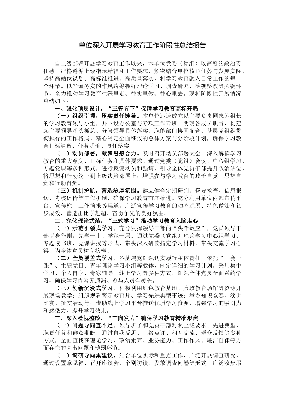 單位深入開展學(xué)習(xí)教育工作階段性總結(jié)報告