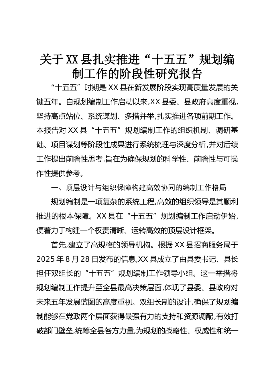 關(guān)于XX縣扎實推進“十五五”規(guī)劃編制工作的階段性研究報告
