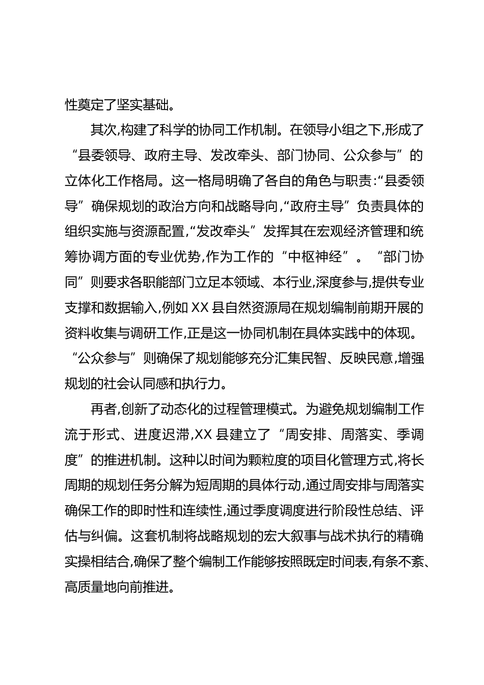 關(guān)于XX縣扎實推進“十五五”規(guī)劃編制工作的階段性研究報告“十五五”時期是XX縣在新發(fā)展階段實現(xiàn)高質(zhì)量發(fā)展的關(guān)鍵五年。自規(guī)劃編制工作啟動以來,XX縣委、縣政府高度重視,堅持高點站位、系統(tǒng)謀劃、多措并舉,扎實推進各項前期工作。本報告對XX縣“十五五”規(guī)劃編制工作的組織機制、調(diào)研基礎(chǔ)、項目謀劃等階段性成果進行系統(tǒng)梳理與深度分析,并對后續(xù)工作提出前瞻性思考,旨在為確保規(guī)劃的科學(xué)性、前瞻性與可操作性提供參考。一、頂層設(shè)計與組織保障構(gòu)建高效協(xié)同的編制工作格局規(guī)劃編制是一項復(fù)雜的系統(tǒng)工程,高效的組織領(lǐng)導(dǎo)是其順利推進的根本保障。XX縣在“十五五”規(guī)劃編制工...