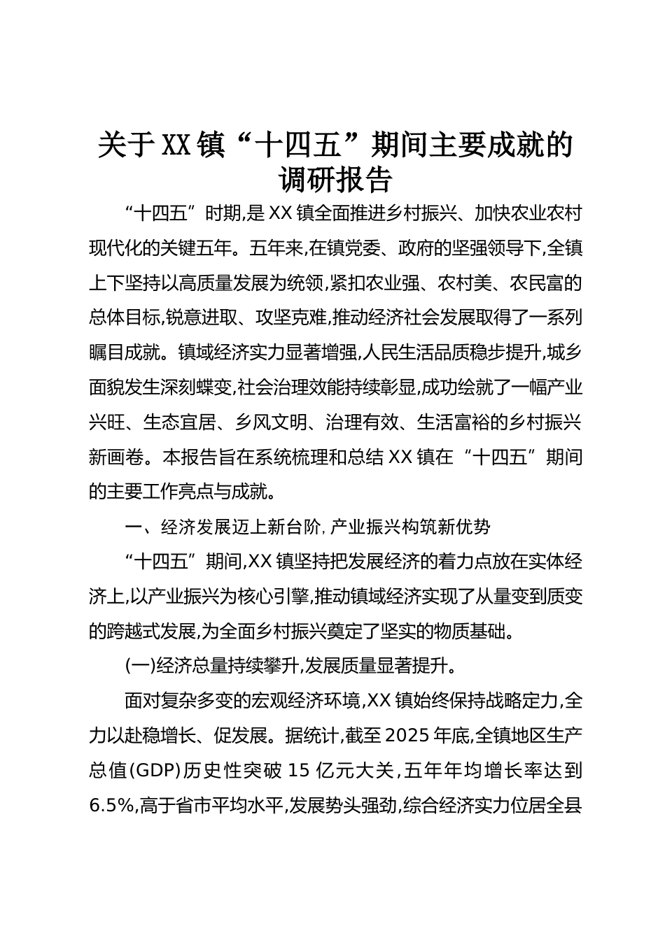 關(guān)于XX鎮(zhèn)“十四五”期間主要成就的調(diào)研報告