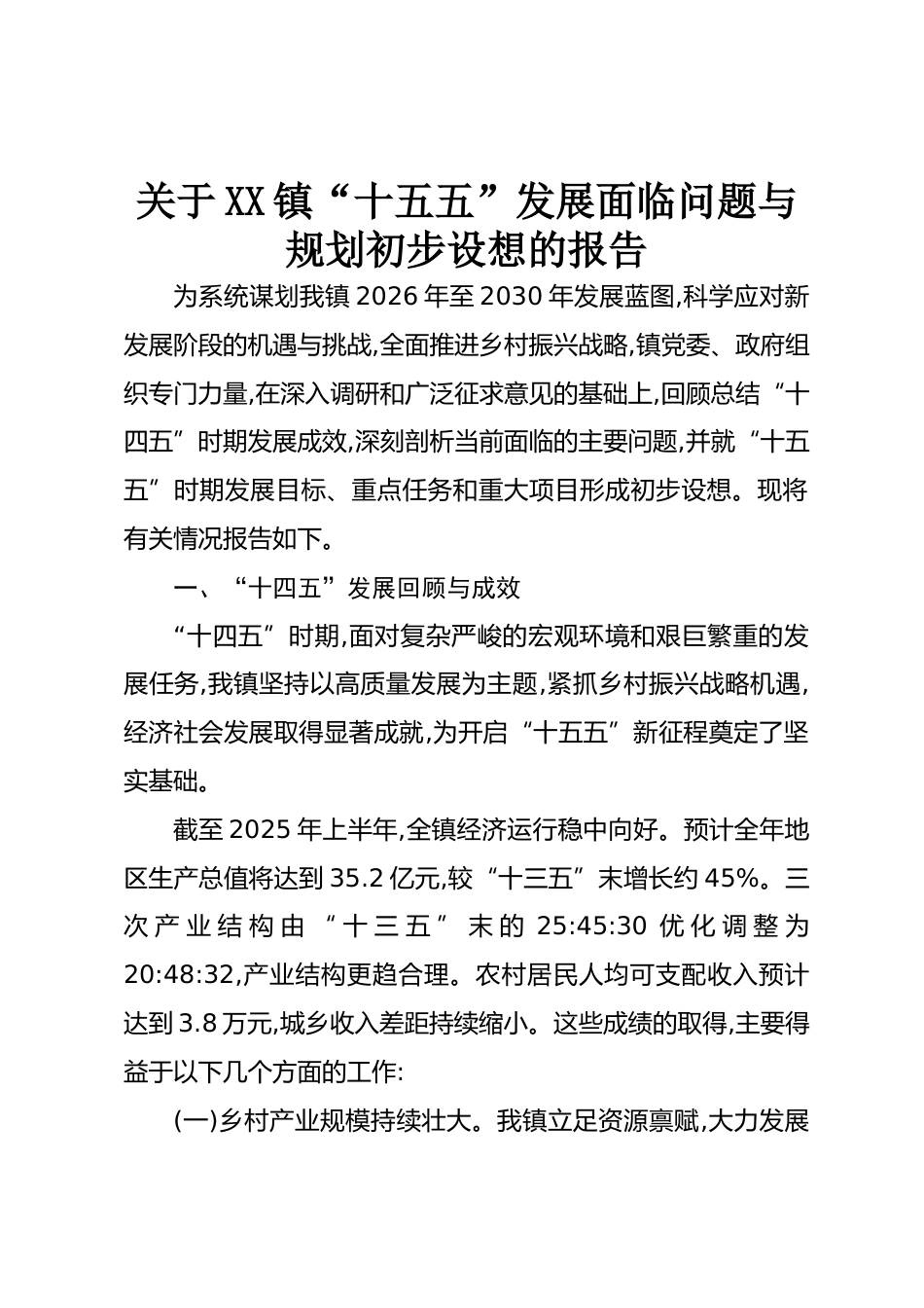 關(guān)于XX鎮(zhèn)“十五五”發(fā)展面臨問題與規(guī)劃初步設(shè)想的報告
