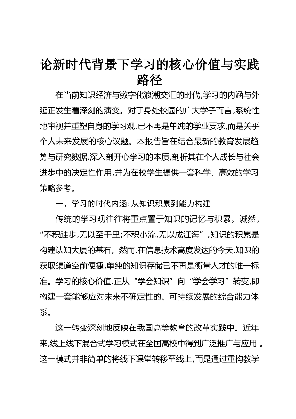 論新時(shí)代背景下學(xué)習(xí)的核心價(jià)值與實(shí)踐路徑