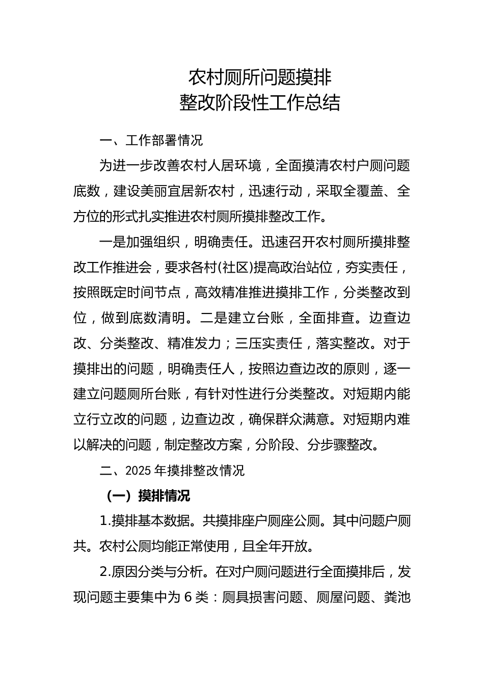 農(nóng)村廁所問題摸排整改階段性工作總結(jié)