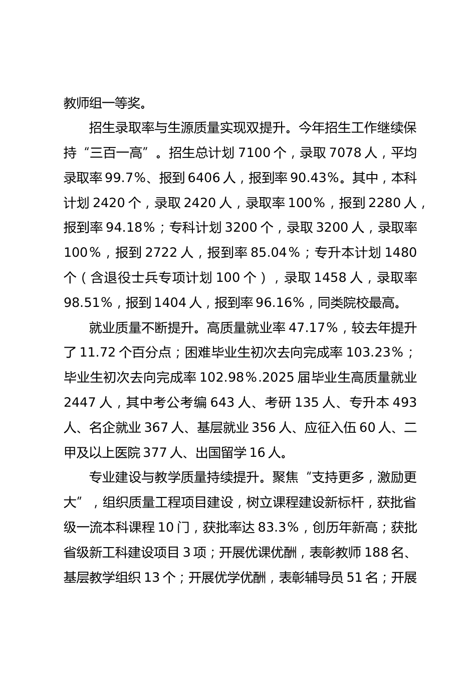 校長(zhǎng)在第41個(gè)教師節(jié)慶祝大會(huì)上的講話:弘揚(yáng)教育家精神鑄就新時(shí)代師魂親愛(ài)的老師們、同學(xué)們:大家下午好!春華秋實(shí),桃李芬芳!今天,我們齊聚一堂,隆重舉行第41個(gè)教師節(jié)慶祝表彰大會(huì),我謹(jǐn)代表學(xué)校向躬耕教壇的廣大教職員工及其在背后默默支持的家屬致以節(jié)日的問(wèn)候!向參加慶祝表彰大會(huì)的附屬醫(yī)院、臨床學(xué)院、合作單位的領(lǐng)導(dǎo)表示熱烈的歡迎!向獲得表彰的最美教師、最美輔導(dǎo)員、最美教育工作者、優(yōu)秀教學(xué)科研團(tuán)隊(duì)、專屬文化榮譽(yù)獲得者等290個(gè)優(yōu)秀個(gè)人和17個(gè)優(yōu)秀團(tuán)隊(duì)表示熱烈的祝賀!2024-2025學(xué)年,我們認(rèn)真貫徹黨的XX大及二中、三中全會(huì)精神,以“十四五”總目標(biāo)為牽...