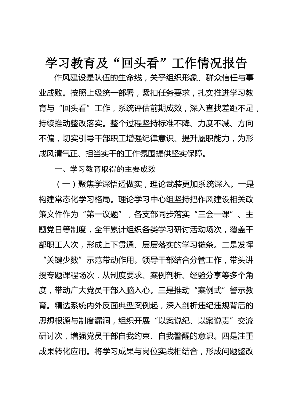 學(xué)習(xí)教育及“回頭看”工作情況報(bào)告