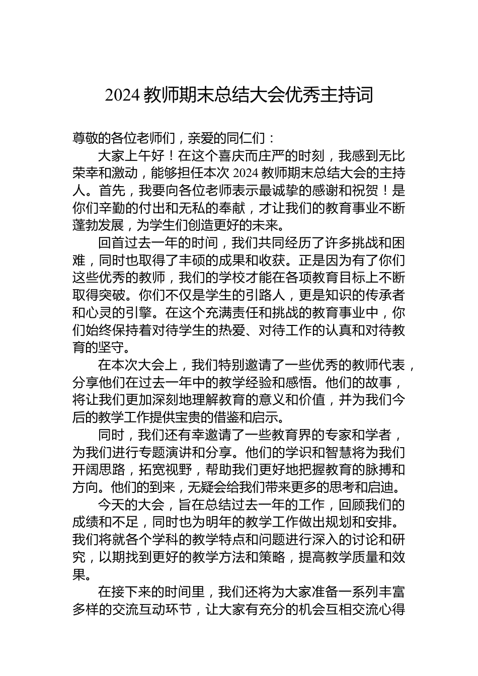2024教師期末總結(jié)大會優(yōu)秀主持詞