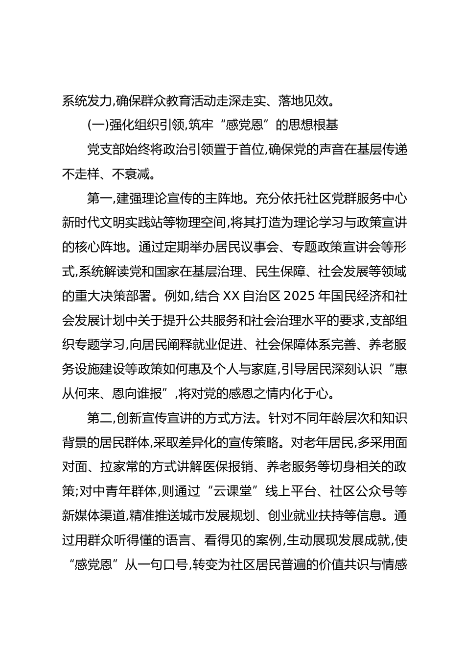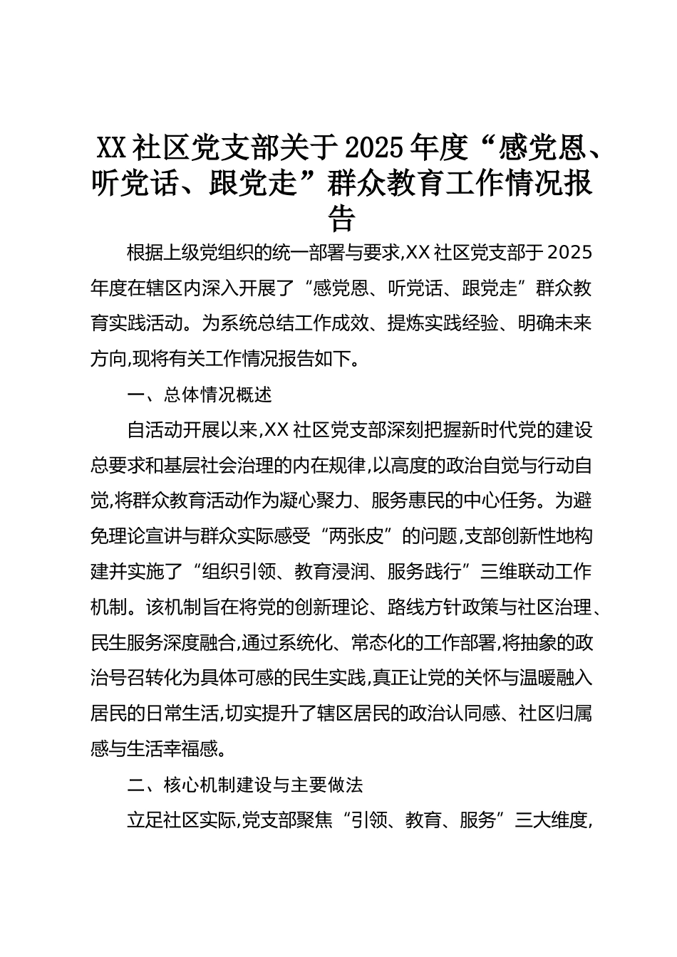 XX社區(qū)黨支部關(guān)于2025年度“感黨恩、聽黨話、跟黨走”群眾教育工作情況報(bào)告