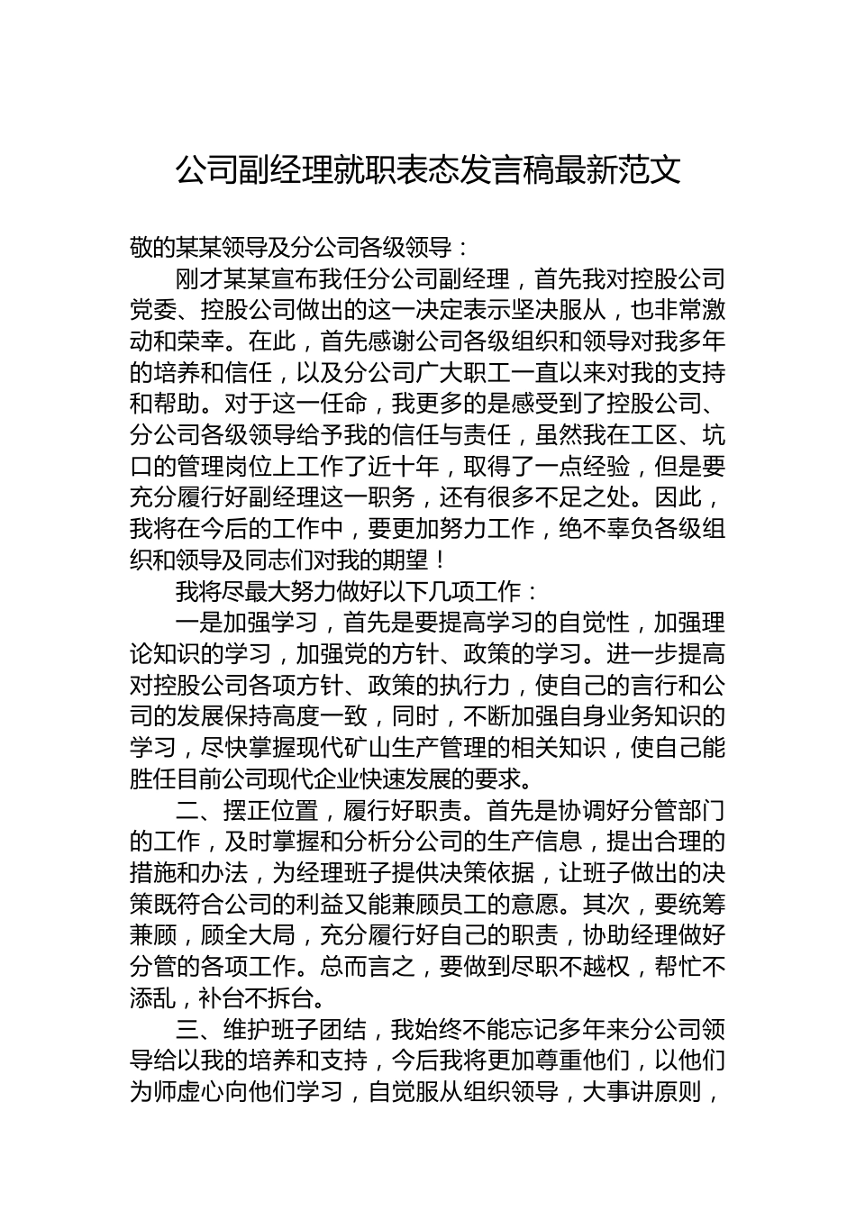 公司副經(jīng)理就職表態(tài)發(fā)言稿最新范文