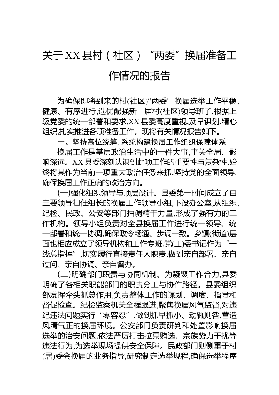 關(guān)于XX縣村(社區(qū))“兩委”換屆準備工作情況的報告