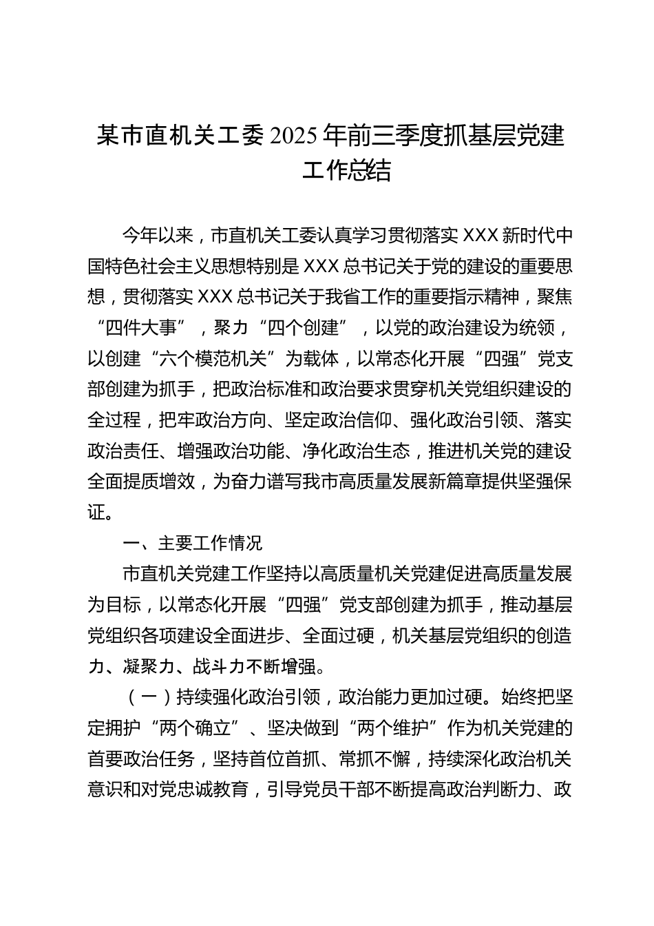 某市直機關工委2025年前三季度抓基層黨建工作總結