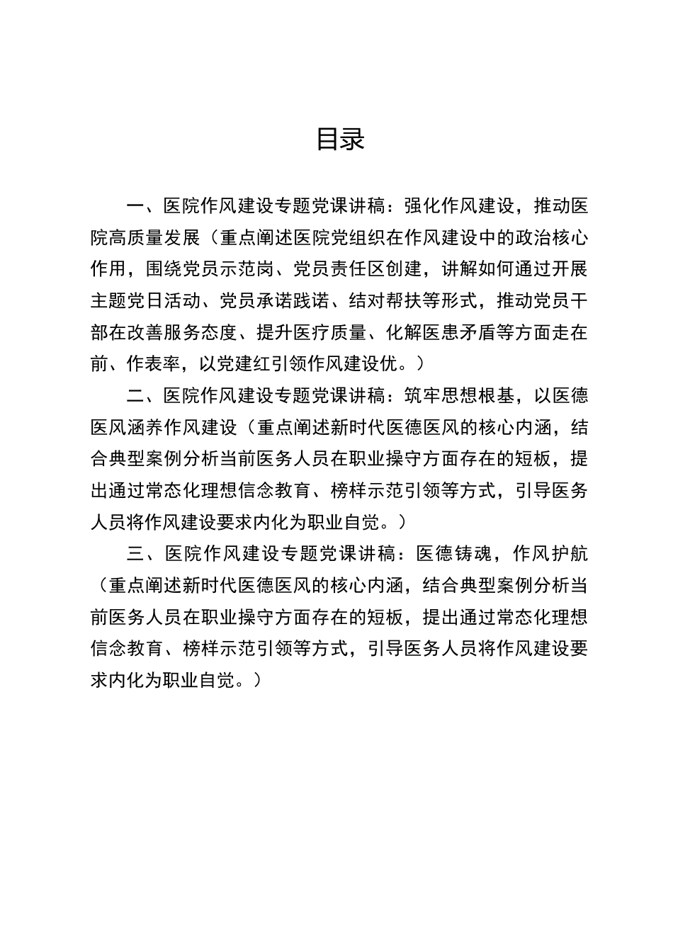 目錄一、醫(yī)院作風(fēng)建設(shè)專題黨課講稿:強(qiáng)化作風(fēng)建設(shè),推動(dòng)醫(yī)院高質(zhì)量發(fā)展(重點(diǎn)闡述醫(yī)院黨組織在作風(fēng)建設(shè)中的政治核心作用,圍繞黨員示范崗、黨員責(zé)任區(qū)創(chuàng)建,講解如何通過開展主題黨日活動(dòng)、黨員承諾踐諾、結(jié)對(duì)幫扶等形式,推動(dòng)黨員干部在改善服務(wù)態(tài)度、提升醫(yī)療質(zhì)量、化解醫(yī)患矛盾等方面走在前、作表率,以黨建紅引領(lǐng)作風(fēng)建設(shè)優(yōu)。)二、醫(yī)院作風(fēng)建設(shè)專題黨課講稿:筑牢思想根基,以醫(yī)德醫(yī)風(fēng)涵養(yǎng)作風(fēng)建設(shè)(重點(diǎn)闡述新時(shí)代醫(yī)德醫(yī)風(fēng)的核心內(nèi)涵,結(jié)合典型案例分析當(dāng)前醫(yī)務(wù)人員在職業(yè)操守方面存在的短板,提出通過常態(tài)化理想信念教育、榜樣示范引領(lǐng)等方式,引導(dǎo)醫(yī)務(wù)人員將作風(fēng)...