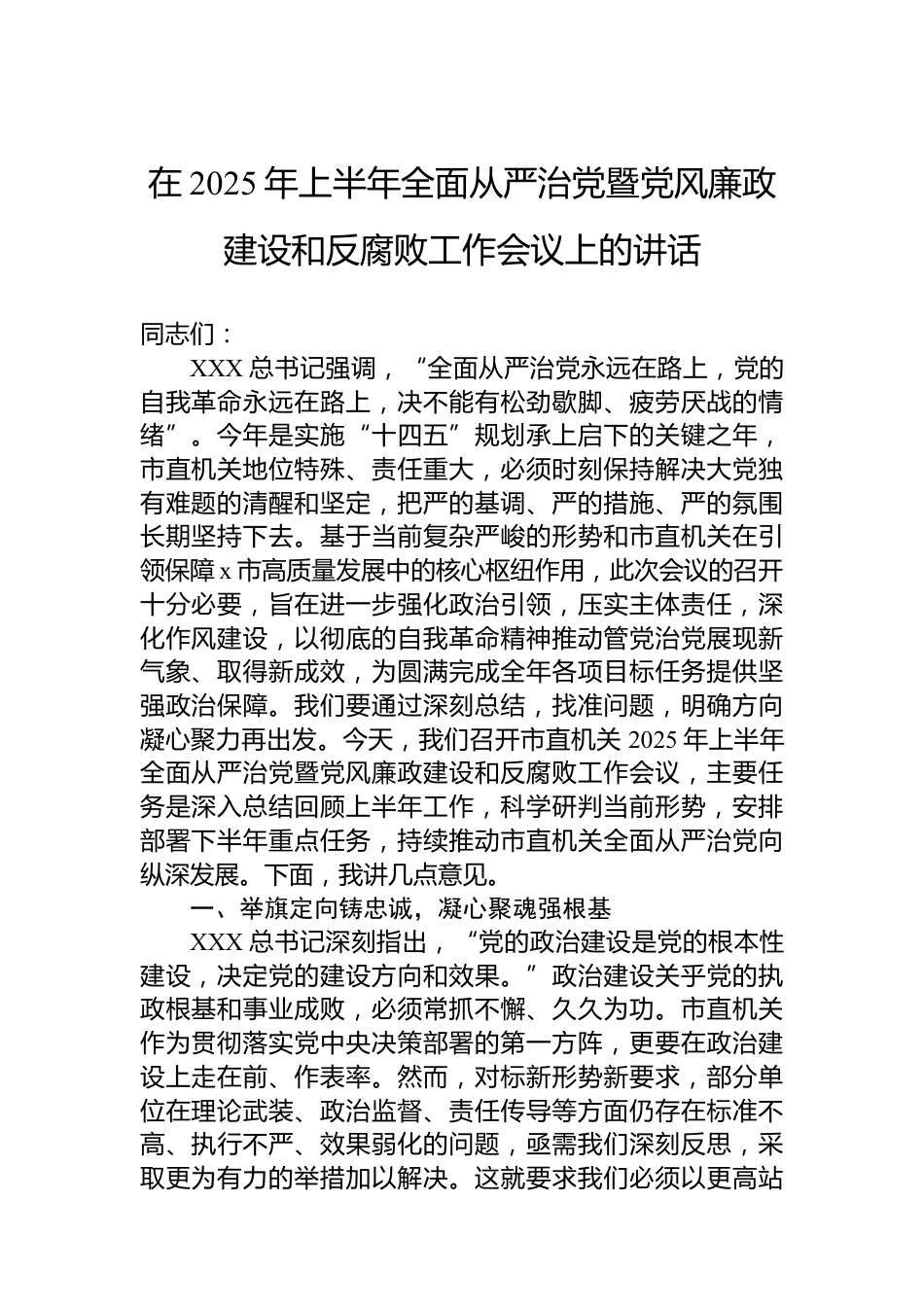 在2025年上半年全面從嚴(yán)治黨暨黨風(fēng)廉政建設(shè)和反腐敗工作會(huì)議上的講話材料匯編(3篇)目錄1.在2025年上半年全面從嚴(yán)治黨暨黨風(fēng)廉政建設(shè)和反腐敗工作會(huì)議上的講話.........................................................................22.在2025年上半年黨風(fēng)廉政建設(shè)和反腐敗工作專題推進(jìn)會(huì)上的講話(集團(tuán)公司)...........................................................153.在2025年上半年全面從嚴(yán)治黨暨黨風(fēng)廉政建設(shè)和反腐敗工作會(huì)議上的講話(集團(tuán)公司)...........................................29在2025年上半年全面從嚴(yán)治黨暨黨風(fēng)廉政建設(shè)和反腐敗工作...