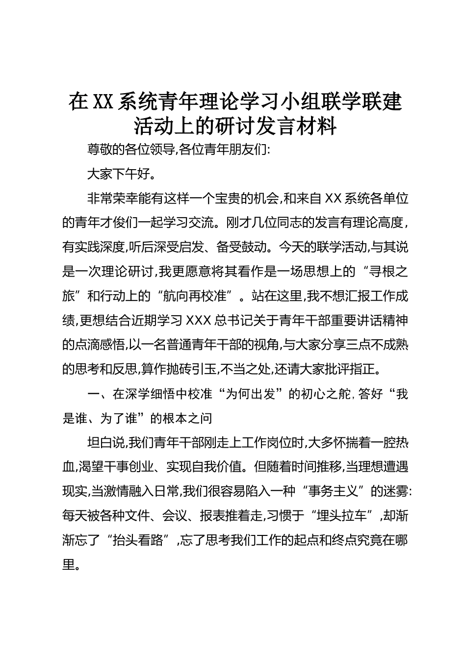 在XX系統(tǒng)青年理論學習小組聯(lián)學聯(lián)建活動上的研討發(fā)言材料