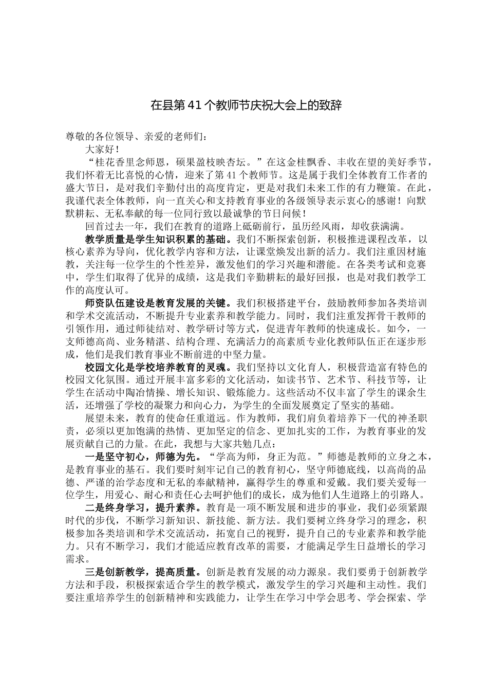 在縣第41個教師節(jié)慶祝大會上的致辭