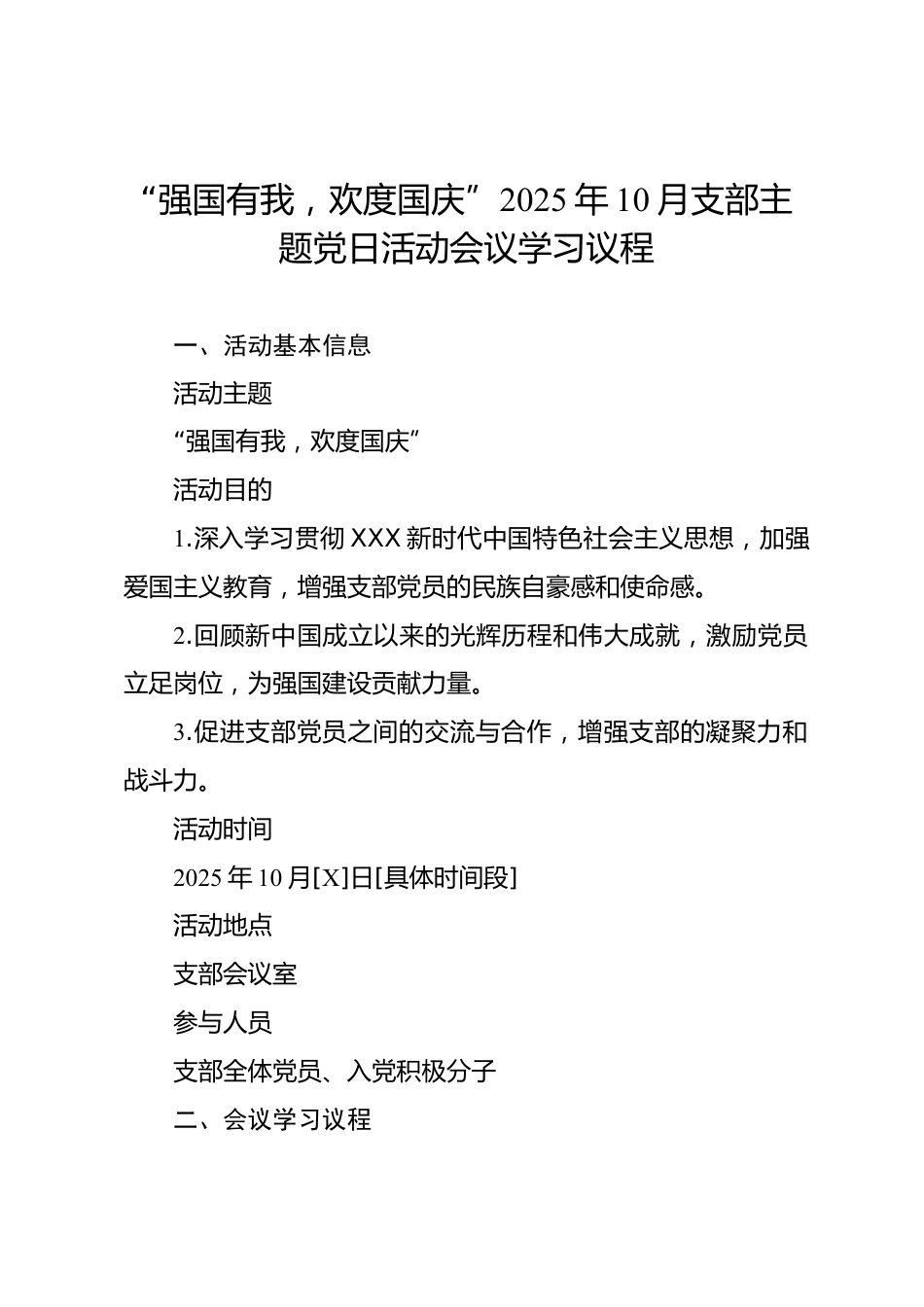 “強國有我,歡度國慶” 2025 年 10 月支部主題黨日活動會議學(xué)習(xí)議程