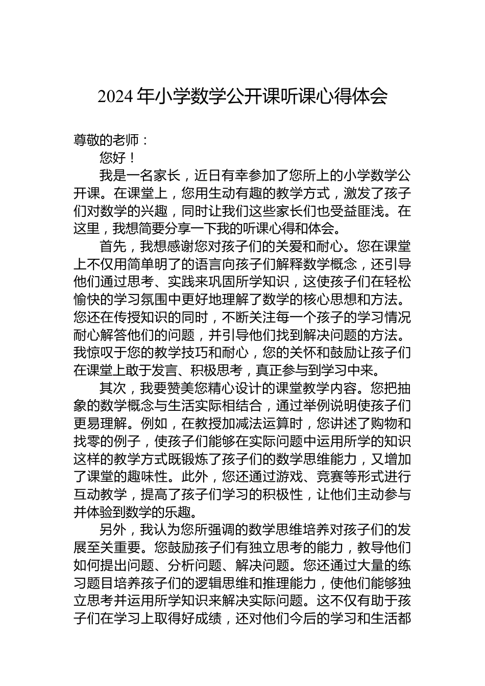 2024年小學(xué)數(shù)學(xué)公開課聽課心得體會