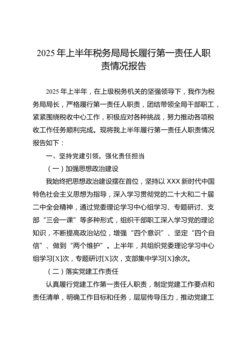 2025 年上半年稅務局局長履行第一責任人職責情況報告