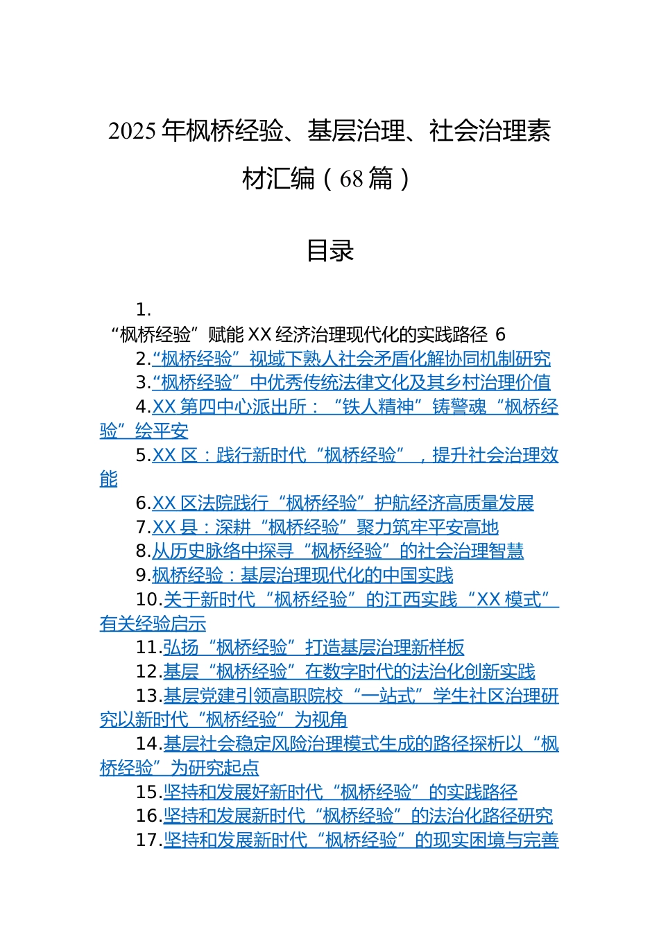 2025年楓橋經(jīng)驗、基層治理、社會治理素材匯編(68篇)