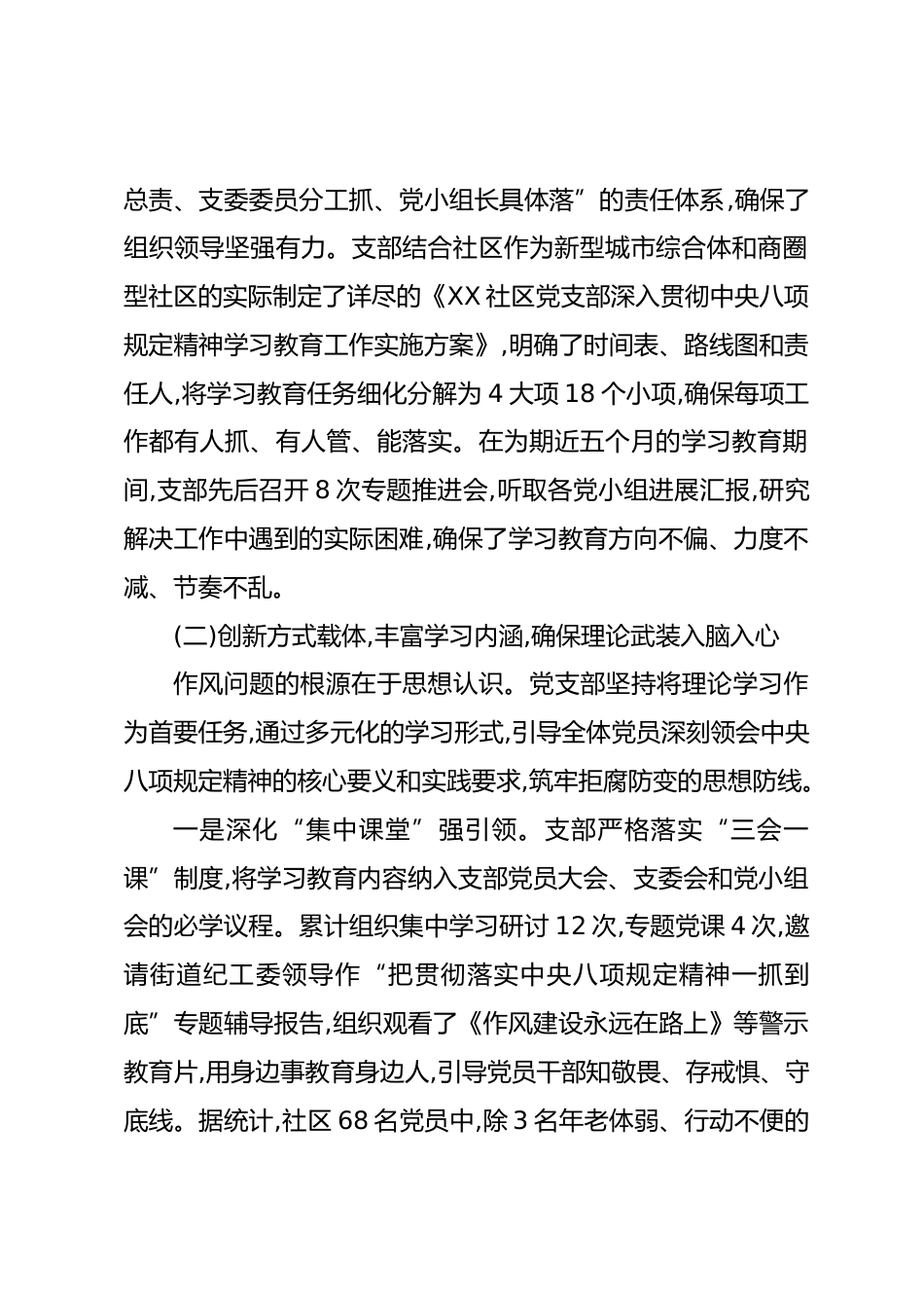 XX社區(qū)黨支部深入貫徹中央八項規(guī)定精神學習教育工作總結