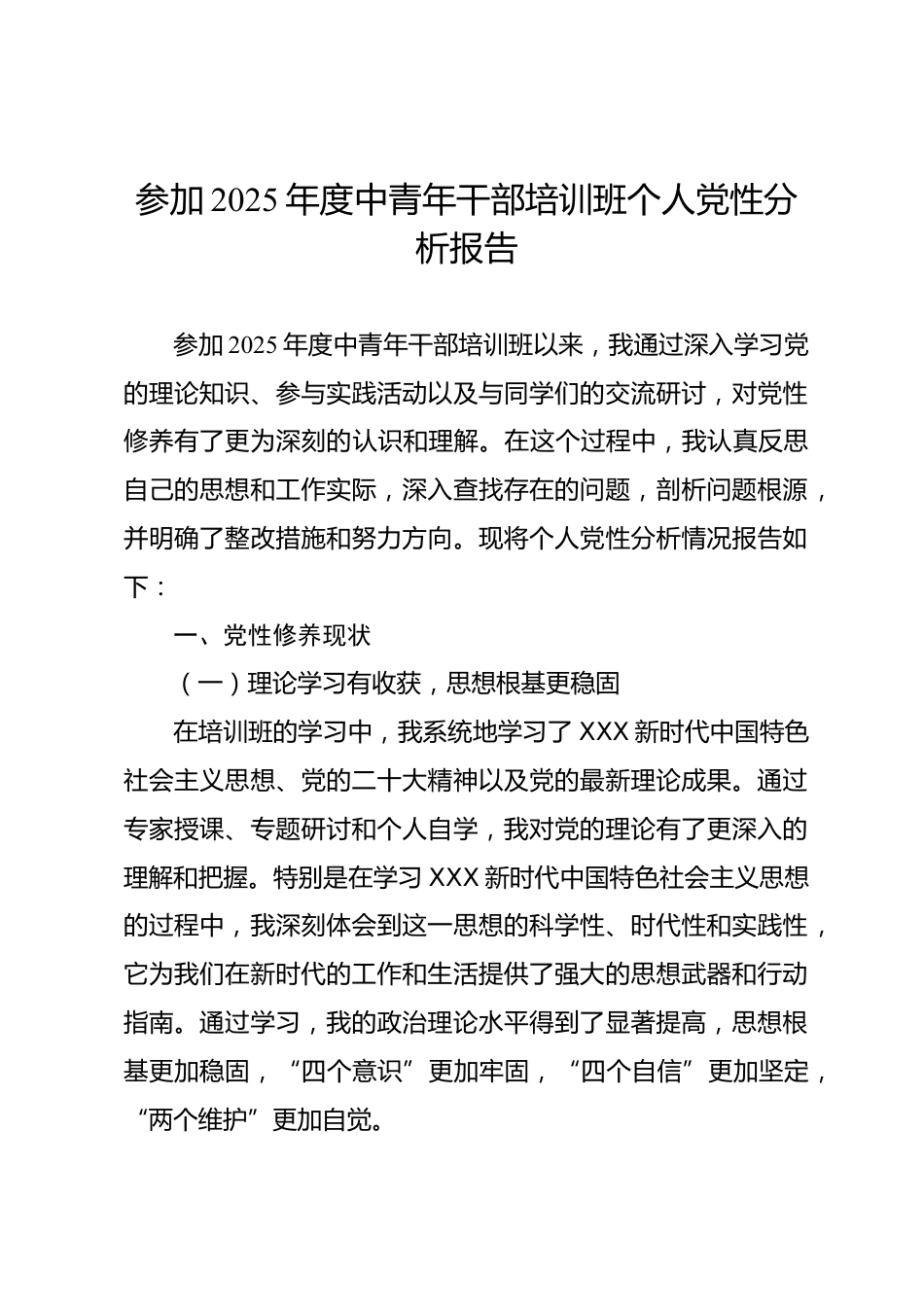 參加2025年度中青年干部培訓(xùn)班個人黨性分析報告