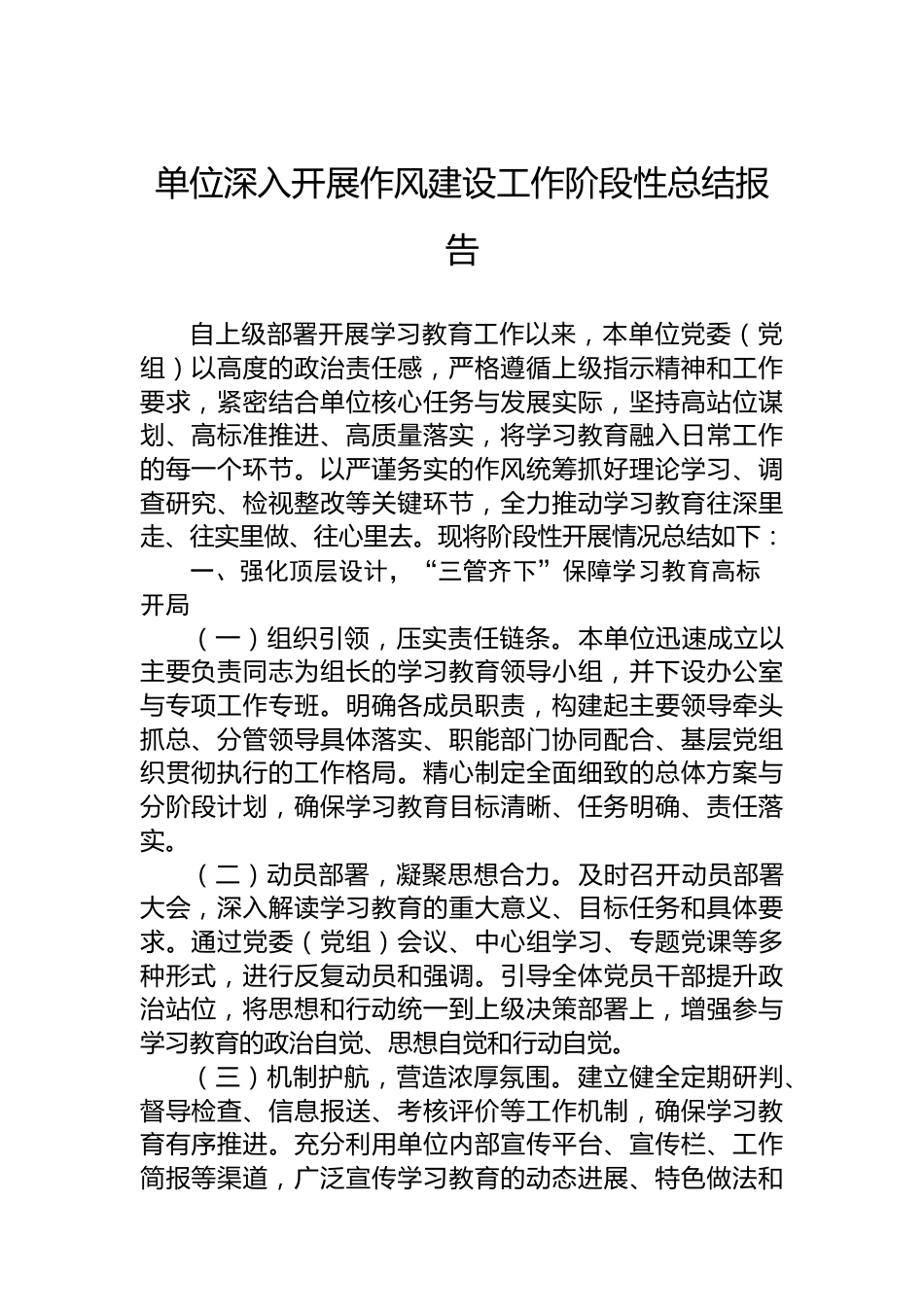 單位深入開(kāi)展作風(fēng)建設(shè)工作階段性總結(jié)報(bào)告