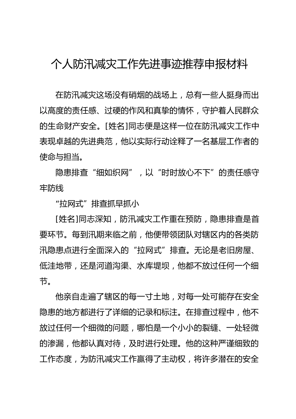 個(gè)人防汛減災(zāi)工作先進(jìn)事跡推薦申報(bào)材料