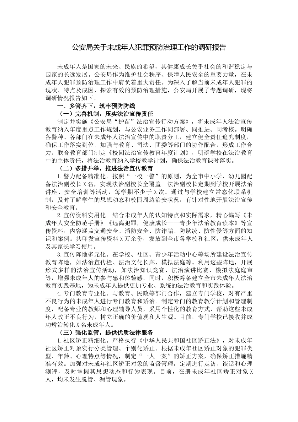 公安局關(guān)于未成年人犯罪預(yù)防治理工作的調(diào)研報告