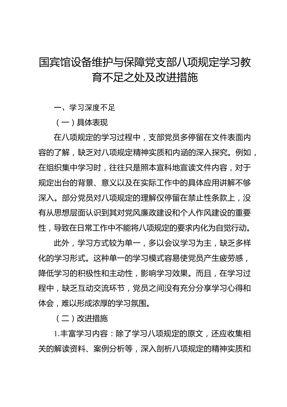 國(guó)賓館設(shè)備維護(hù)與保障黨支部八項(xiàng)規(guī)定學(xué)習(xí)教育不足之處及改進(jìn)措施