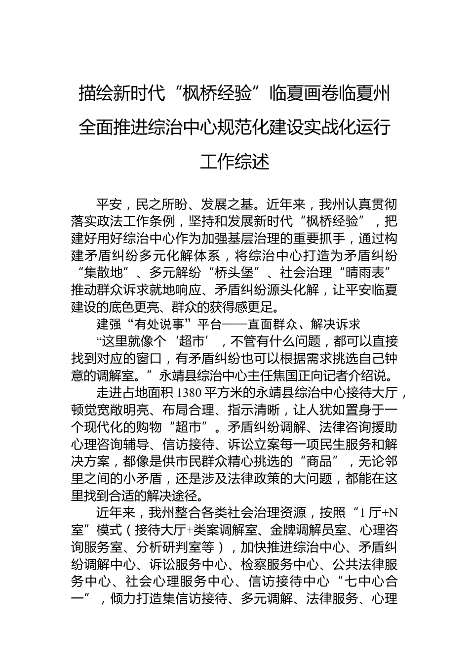 描繪新時代“楓橋經(jīng)驗”臨夏畫卷臨夏州全面推進(jìn)綜治中心規(guī)范化建設(shè)實戰(zhàn)化運行工作綜述