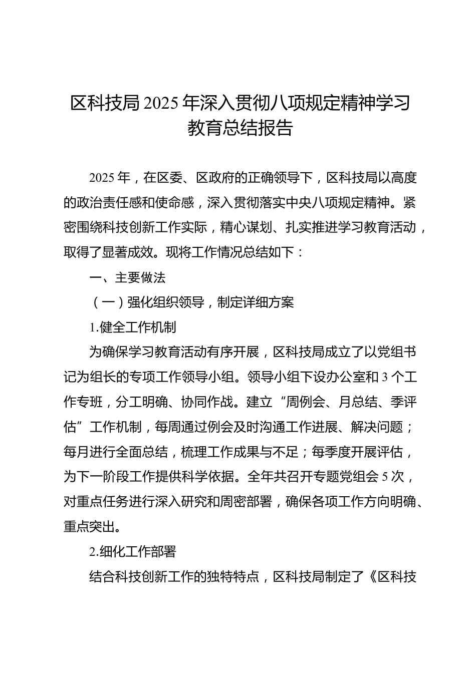 區(qū)科技局2025年深入貫徹八項(xiàng)規(guī)定精神學(xué)習(xí)教育總結(jié)報(bào)告
