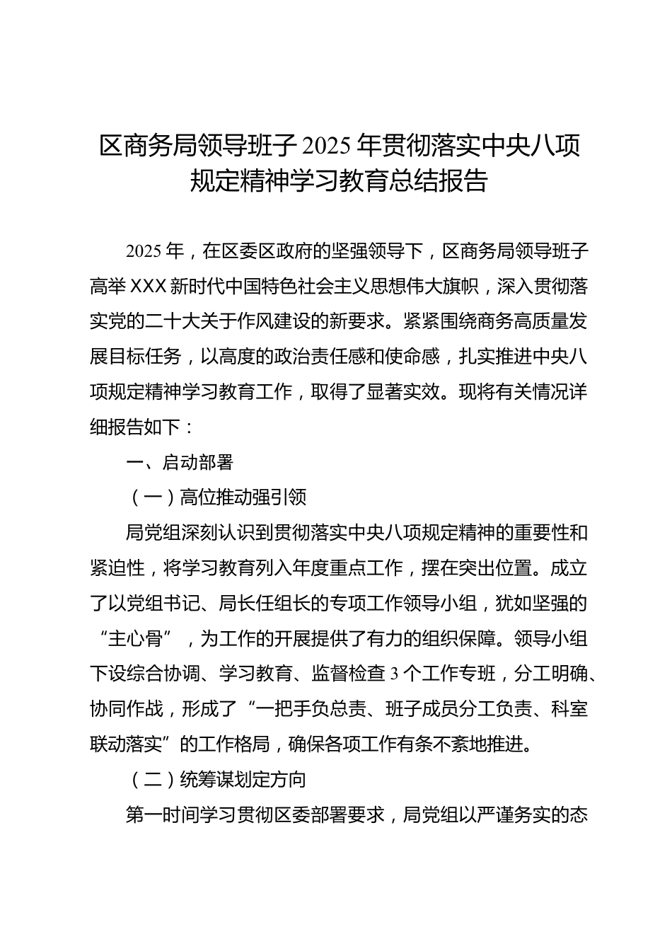 區(qū)商務(wù)局領(lǐng)導(dǎo)班子2025年貫徹落實(shí)中央八項(xiàng)規(guī)定精神學(xué)習(xí)教育總結(jié)報(bào)告