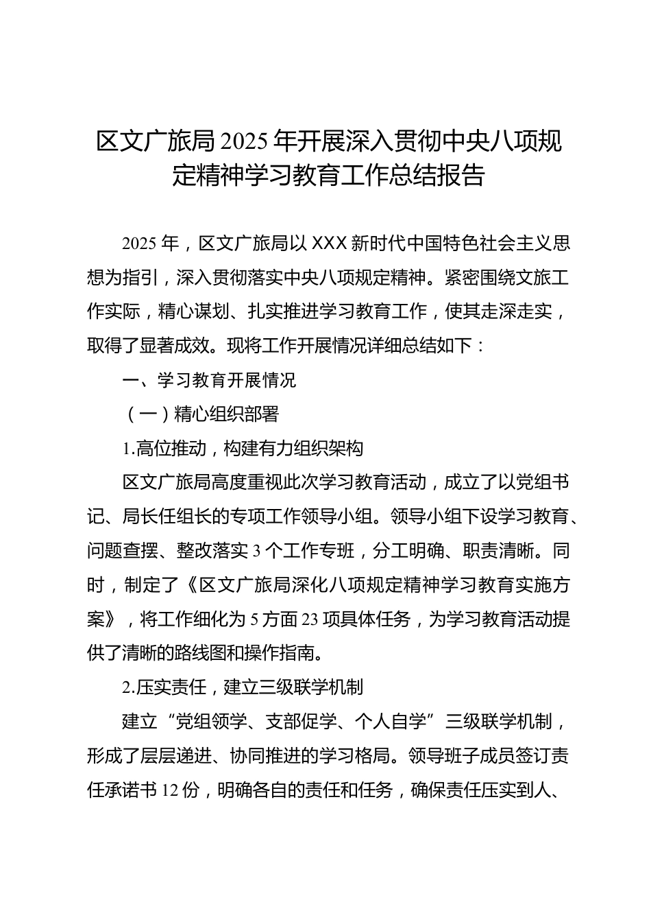 區(qū)文廣旅局2025年開展深入貫徹中央八項(xiàng)規(guī)定精神學(xué)習(xí)教育工作總結(jié)報(bào)告